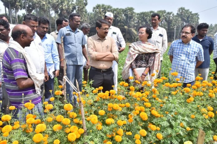 స్టాఫ్ రిపోర్టర్ పెన్ పవర్, విజయనగరం. మార్చి 06 : అత్యధిక లాభాలను ఇచ్చే ఉద్యాన పంటలను సాగు చేయాలని జిల్లా రైతాంగానికి కలెక్టర్ ఎస్.రాంసుందర్ రెడ్డి పిలుపునిచ్చారు. భోగాపురం మండలంలో శుక్రవారం కలెక్టర్ పర్యటించారు. కొయ్యపేటలో రైతులు సాగుచేస్తున్న ఉద్యాన పంటలను పరిశీలించారు. పొలాల్లో దిగి రైతులతో మాట్లాడి వారి సమస్యలను తెలుసుకున్నారు. సాగు చేస్తున్న పద్దతులు, మార్కెట్ సదుపాయం తదితర అంశాలను ఆరా తీశారు. వరి స్థానంలో అత్యధిక ఆదాయాన్ని ఇచ్చే ఉద్యాన పంటలవైపు రైతులు దృష్టి సారించాలని కోరారు. వివిధ రకాల కూరగాయలు, ఆకుకూరలు, పళ్లు, పూల సాగు ద్వారా నిరంతరం ఆదాయాన్ని పొందవచ్చునని సూచించారు. ఉద్యాన సాగు వైపు మళ్లే రైతులకు జిల్లా యంత్రాంగం అన్నివిధాలా సహకారాన్ని, ప్రోత్సాహాన్ని ఇస్తుందని హామీ ఇచ్చారు. అలాగే వారు పండించే పంటలకు మార్కెట్ సదుపాయాన్న, సాంకేతిక పరిజ్ఞానాన్ని కూడా అందిస్తామని అన్నారు. అత్యధిక దిగుబడి కోసం సంప్రదాయ సాగు పద్దతులు బదులు ఆధునిక విధానాలను అవలంభించాలని కలెక్టర్ సూచించారు. ఈ పర్యటనలో ఉద్యానశాఖ డిడి చిట్టిబాబు, వ్యవసాయశాఖ ఎడి నాగభూషణరావు, మండల వ్యవసాయాధికారి హైమావతి, ఉద్యాన అధికారి ఉమాభారతి తదితరులు పాల్గొన్నారు.