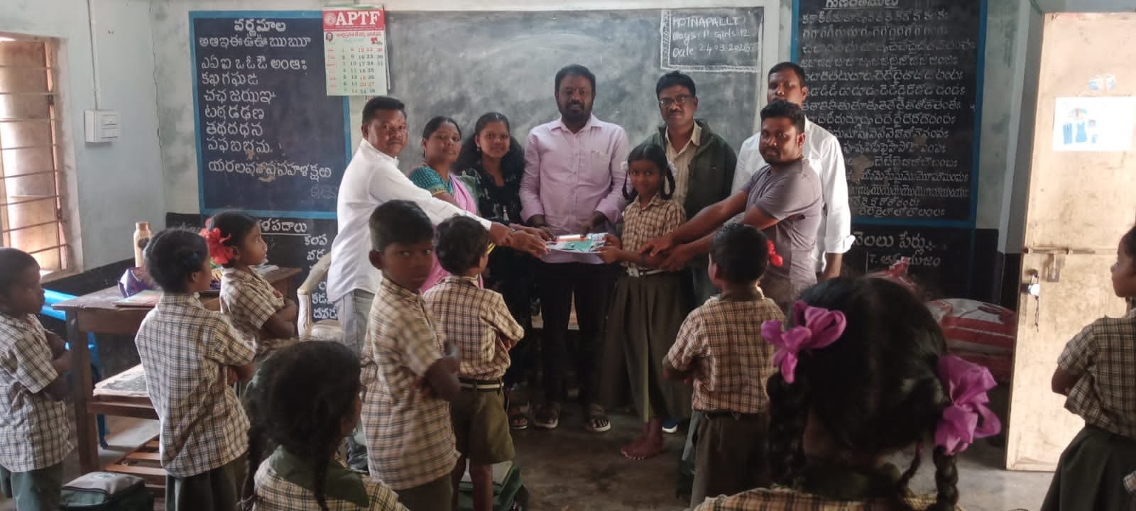 గూడెం కొత్త వీధి,పెన్ పవర్, మార్చి 24:అల్లూరి సీతారామరాజు జిల్లా గూడెం కొత్త వీధి మండలం దేవరపల్లి పంచాయతీ కోట్నాపల్లి గ్రామంలో పాఠశాల విద్యార్థులకు వినూత్న కార్యక్రమం జరిగింది. జీకే వీధి పిఎసిఎస్ చైర్మన్ మొట్టడం నూకరాజు కుమార్తె హరిప్రియ పుట్టినరోజు సందర్భంగా స్థానిక ఎంపీపీ పాఠశాలలో విద్యార్థులకు పెన్నులు, నోటుపుస్తకాలు పంపిణీ చేశారు.ఈ కార్యక్రమాన్ని తెలుగుదేశం పార్టీ సీనియర్ నాయకులు, జిసిసి మాజీ చైర్మన్, రాష్ట్ర టిడిపి కార్యదర్శి ఎం.వి.వి.ఎస్. ప్రసాద్ ఆధ్వర్యంలో నిర్వహించారు. విద్యార్థుల విద్యాభివృద్ధి దిశగా ఈ చిన్న సహకారం అందించడం సంతోషకరమని ఆయన పేర్కొన్నారు.ఈ కార్యక్రమంలో పిఎసిఎస్ చైర్మన్ మొట్టడం నూకరాజు, జీకే వీధి మండల టిడిపి ఆర్గనైజేషన్ సెక్రటరీ మొట్టడం ఎం.వి.ఎస్.ఎన్ ప్రసాద్, పాంగి కృష్ణ, కుమారి, ఉపాధ్యాయులు వి. రాజు, కె. గణపతి తదితరులు పాల్గొన్నారు.విద్యార్థులు, ఉపాధ్యాయులు ఈ కార్యక్రమాన్ని అభినందించారు. పుట్టినరోజు సందర్భంగా సామాజిక సేవా కార్యక్రమం చేపట్టడం ద్వారా విద్యార్థులకు ప్రోత్సాహం లభించినట్లుగా స్థానికులు తెలిపారు.
