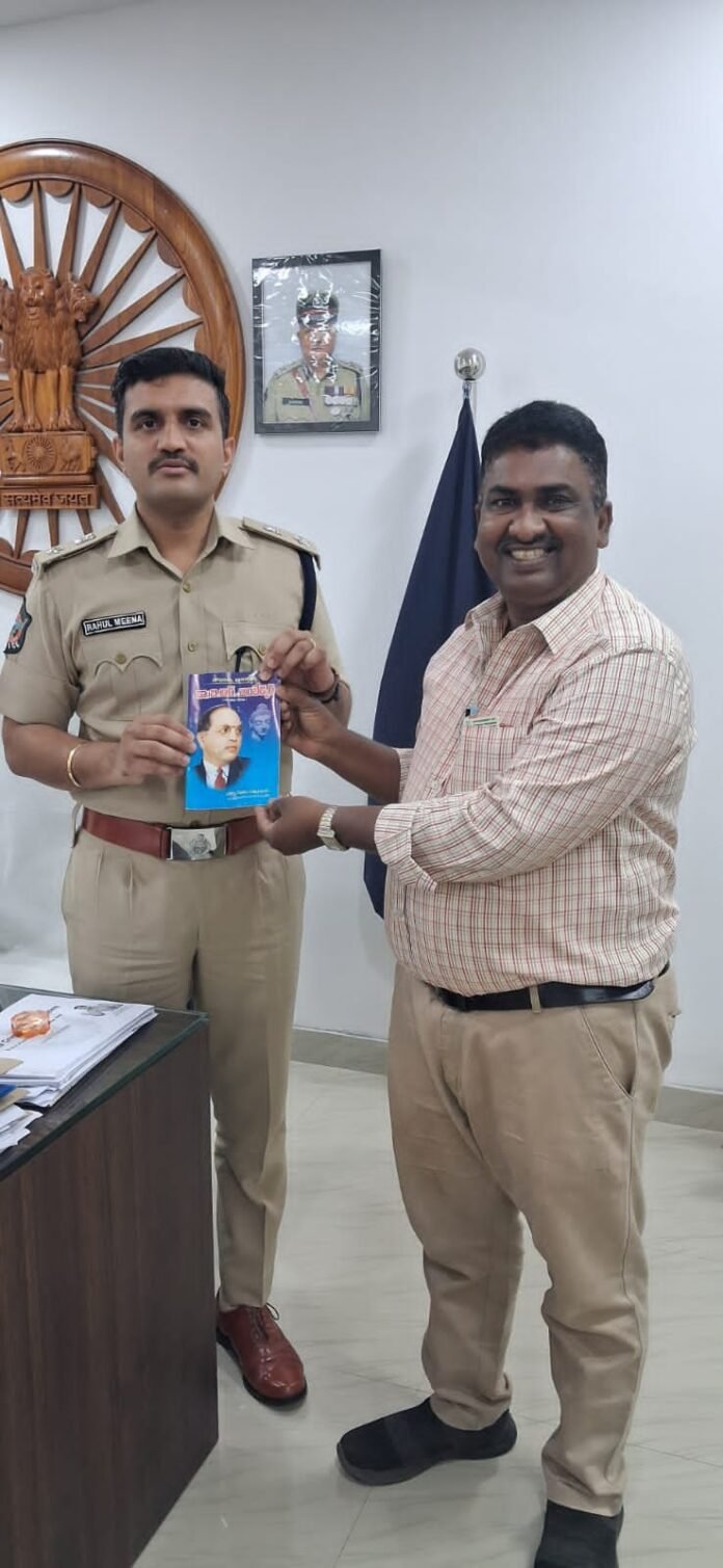 డాక్టర్ బి.ఆర్. అంబేద్కర్ కోనసీమ జిల్లా ఎస్పీ రాహుల్ మీనా ను గురువారం సామాజికవేత్త, పాత్రికేయుడు, డాక్టర్ బి.ఆర్. అంబేద్కర్ నేషనల్ అవార్డు గ్రహీత కొండేపూడి బుల్లి రాజు మర్యాదపూర్వకంగా కలిశారు.ఈ సందర్భంగా డాక్టర్ బి.ఆర్. అంబేద్కర్ జీవిత చరిత్రపై రూపొందించిన మ్యాగజైన్ను ఎస్పీ రాహుల్ మీనా కు బుల్లి రాజు అందజేశారు.సమాజ సేవలో నిరంతరం శ్రమిస్తూ, డాక్టర్ బి.ఆర్. అంబేద్కర్ ఆలోచనలతో ముందుకు సాగుతూ,ఆయన జీవిత చరిత్ర పుస్తకాలను అధికారులకు, ప్రజాప్రతినిధులకు అందజేయడం అభినందనీయమని ఎస్పీ రాహుల్ మీనా పేర్కొన్నారు.సమాజంలో చైతన్యం పెంపొందించడంలో బుల్లి రాజు చేస్తున్న కృషిని ఈ సందర్భంగా ఎస్పీ ప్రశంసించారు.