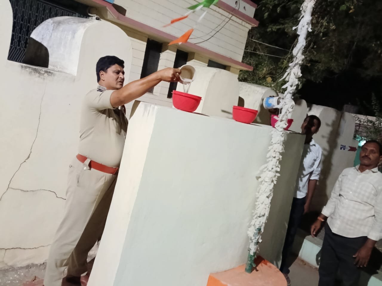 వేసవి తీవ్రత రోజురోజుకూ పెరుగుతుండటంతో చెట్లు, నీటి వనరులు తగ్గిపోవడం వల్ల పక్షులు నీటి కోసం ఎగిరే దూరం పెరిగింది. ఈ నేపథ్యంలో వాటి ప్రాణాలు కాపాడాలని భావించిన ఎస్సై సాంబ శివరావు స్వచ్ఛందంగా ముందుకు వచ్చి ఈ కార్యక్రమాన్ని ప్రారంభించారు.స్టేషన్ పరిధిలోని సిబ్బంది సహకారంతో పక్షులు సులభంగా చేరుకునే ప్రదేశాల్లో నీటి టబ్బులను ఏర్పాటు చేయడం జరిగింది. ప్రతి రోజు వాటిలో స్వచ్ఛమైన నీటిని నింపుతూ పక్షులకు ఉపశమనం కలిగిస్తున్నారు.ఈ సందర్భంగా ఎస్సై మాట్లాడుతూ మనుషులకే కాదు, ప్రతి జీవికి జీవించడానికి నీరు అవసరం.వేసవిలో పక్షులు నీటి కోసం అలమటిస్తుంటాయి. చిన్న ప్రయత్నంతో వాటి ప్రాణాలను కాపాడవచ్చు అని తెలిపారు.ప్రజలు కూడా తమ ఇళ్ల వద్ద, తోటల్లో చిన్న పాత్రల్లో నీటిని ఏర్పాటు చేసి పక్షులకు సహాయం చేయాలని ఆయన పిలుపునిచ్చారు.పోలీస్ స్టేషన్లో చేపట్టిన ఈ కార్యక్రమాన్ని చూసి స్థానికులు హర్షం వ్యక్తం చేస్తున్నారు.పోలీసులంటే కేవలం చట్టం అమలు చేసే వారు మాత్రమే కాకుండా, సమాజం పట్ల బాధ్యతతో పనిచేసే వారని మరోసారి నిరూపితమైంది. పక్షులపై చూపిన ఈ మానవత్వం అందరికీ ఆదర్శంగా నిలుస్తోంది.ఇలాంటి చిన్న చర్యలతో ప్రకృతి సమతుల్యతను కాపాడుకోవచ్చని, ప్రతి ఒక్కరూ తమ వంతు బాధ్యతను గుర్తించాల్సిన అవసరం ఉందని స్థానికులు అభిప్రాయపడుతున్నారు. ఈ కార్యక్రమంలో పోలీస్ సిబ్బంది పాల్గొన్నారు.