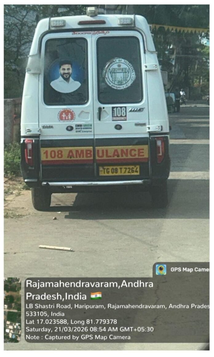 తెలంగాణ 108 అంబులెన్స్ రాజమండ్రిలో ప్రత్యక్షం..