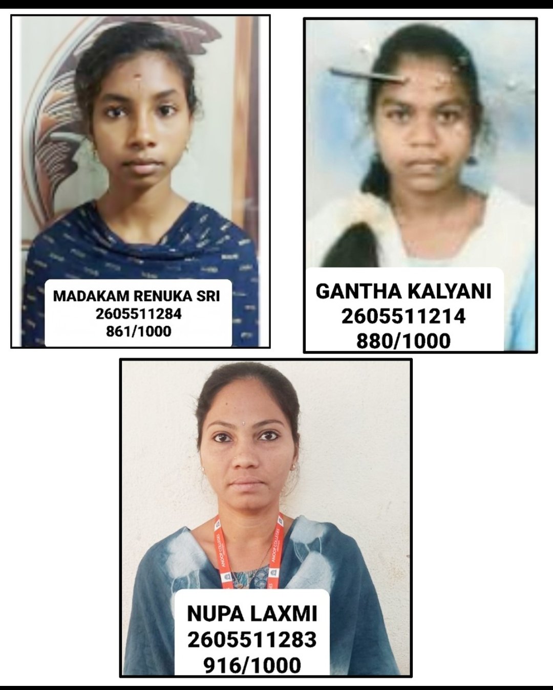 మడకం రేణుకా శ్రీ కి 861/1000.కి మార్క్స్ సాధించి రెండు మూడు ప్లేస్ లలో నిలిచారు .