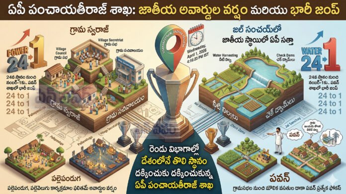 - రెండు విభాగాల్లో దేశంలోనే తొలి స్థానం దక్కించుకున్న ఏపీ పంచాయతీరాజ్ శాఖ
