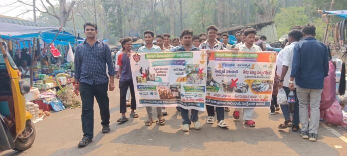 గూడెం కొత్తవీధి,పెన్ పవర్,ఏప్రిల్ 20:రహదారి భద్రత నిబంధనలు తప్పనిసరిగా పాటించి సురక్షితంగా గమ్యస్థానాలకు చేరుకోవాలని జీకేవీధి ఎస్సై సురేష్ సూచించారు. గూడెం కొత్తవీధి మండలం ఆర్వీనగర్ వారపు సంతలో సోమవారం గిరిజనులతో కలిసి రోడ్డు ప్రమాదాలు, మహిళలపై దాడుల నివారణపై అవగాహన ర్యాలీ నిర్వహించారు.ఈ సందర్భంగా పాల్గొన్న వారు “రోడ్డు నిబంధనలు పాటించండి – సురక్షితంగా గమ్యానికి చేరండి”, “ప్రమాదాలకు గురై కుటుంబాల్లో విషాదం నింపొద్దు”, “మీ కోసం ఎదురు చూస్తున్న కుటుంబ సభ్యులను గుర్తుంచుకుని జాగ్రత్తగా ప్రయాణం చేయండి”, “మహిళలు, బాలికలపై దాడులను నివారిద్దాం” వంటి నినాదాలు చేశారు.ఈ సందర్భంగా ఎస్సై సురేష్ మాట్లాడుతూ, జిల్లా పోలీస్ శాఖ ఆధ్వర్యంలో రహదారి భద్రత, వాహన చోదనపై అనేక అవగాహన కార్యక్రమాలు నిర్వహిస్తున్నప్పటికీ ప్రమాదాలు తగ్గకపోవడం ఆందోళనకరమని అన్నారు. ముఖ్యంగా ఇటీవల యువత రోడ్డు ప్రమాదాలకు గురవుతున్నారని పేర్కొన్నారు. రహదారి నిబంధనలు కచ్చితంగా పాటిస్తూ జాగ్రత్తగా వాహనాలు నడపాలని, సురక్షిత ప్రయాణానికి ప్రాధాన్యత ఇవ్వాలని సూచించారు. అలాగే మహిళలపై దాడులకు పాల్పడి చట్టపరమైన చర్యలకు గురికాకుండా బాధ్యతతో ప్రవర్తించాలని హెచ్చరించారు.