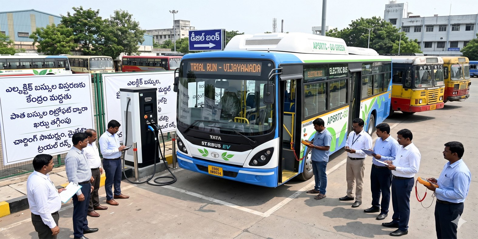 ఆంధ్రప్రదేశ్ ప్రభుత్వం సుస్థిర రవాణా వ్యవస్థ అభివృద్ధి దిశగా కీలక అడుగులు వేస్తోంది. “సుస్థిర విద్యుత్ వాహన పాలసీ 4.0” కింద రాష్ట్ర రోడ్డు రవాణా సంస్థ (ఆర్టీసీ)లో పలు సంస్కరణలకు శ్రీకారం చుట్టింది. ముఖ్యంగా డీజిల్ వినియోగాన్ని తగ్గిస్తూ, పర్యావరణ హితంగా విద్యుత్ బస్సుల వినియోగాన్ని విస్తరించే లక్ష్యంతో చర్యలు చేపడుతోంది.కేంద్ర ప్రభుత్వం ఇప్పటికే రాష్ట్రానికి 1050 ఎలక్ట్రిక్ బస్సులను కేటాయించగా, అదనంగా మరో 1450 బస్సులను సమీకరించాలని రాష్ట్ర ప్రభుత్వం నిర్ణయించింది. ఇదే సమయంలో పాత డీజిల్ బస్సులను పూర్తిగా తొలగించకుండా, వాటిని రీమోడల్ చేసి విద్యుత్ బస్సులుగా మార్చే వినూత్న ప్రయత్నం ప్రారంభించింది.ఇటీవల ఒక పాత సూపర్ లగ్జరీ బస్సును ప్రూఫ్ ఆఫ్ కాన్సెప్ట్గా తీసుకుని, దానిని పూర్తిగా విద్యుత్తో నడిచే ఏసీ బస్సుగా మార్చారు. ఈ ప్రక్రియను కళ్యాణీ ట్రాన్స్ సంస్థ (భారత్ ఫోర్జ్) ప్రయోగాత్మకంగా నిర్వహించింది. “ఇంద్ర సర్వీస్” పేరిట రూపొందించిన ఈ ఎలక్ట్రిక్ బస్సును విజయవాడ ఆర్టీసీ హౌస్కు తీసుకువచ్చి అధికారులు పరిశీలించారు.ఈ బస్సును త్వరలో ఒక ఎంపిక చేసిన మార్గంలో ట్రయల్ రన్ కోసం నడపాలని నిర్ణయించారు. ఈ పరీక్షల ద్వారా ఒకసారి ఛార్జ్ చేస్తే ఎంత దూరం ప్రయాణించగలదో, ఛార్జింగ్ సమయం, నిర్వహణ ఖర్చులు వంటి అంశాలను సమగ్రంగా అంచనా వేయనున్నారు.ఇంకా, కొత్త ఎలక్ట్రిక్ బస్సులను కొనుగోలు చేయడం కంటే పాత బస్సులను రిట్రోఫిట్ చేయడం ఎంతవరకు లాభదాయకమో కూడా ప్రభుత్వం విశ్లేషిస్తోంది. ఖర్చు, పనితీరు, దీర్ఘకాల ప్రయోజనాలను పరిశీలించి భవిష్యత్లో పెద్ద ఎత్తున ఈ విధానాన్ని అమలు చేసే అవకాశాలు ఉన్నాయి.ఇప్పటికే చిత్తూరు డిపోలో ఒక డీజిల్ బస్సును సీఎన్జీ బస్సుగా మార్చి విజయవంతంగా ట్రయల్ రన్ పూర్తి చేశారు. ఈ అనుభవంతో ఇప్పుడు విద్యుత్ మార్పులపై మరింత దృష్టి పెట్టారు. మరోవైపు రాష్ట్రవ్యాప్తంగా ఆర్టీసీ సేవలు ఎలాంటి ఆటంకం లేకుండా కొనసాగుతున్నాయని అధికారులు స్పష్టం చేశారు. రాష్ట్రంలో సుమారు 11 వేల బస్సులు నడుస్తుండగా, రోజుకు సుమారు 7.5 లక్షల లీటర్ల డీజిల్ వినియోగం జరుగుతోంది. ప్రస్తుతం డీజిల్ కొరత ఎలాంటి సమస్యగా లేదని, ఆయిల్ కంపెనీలతో నిరంతరం సమన్వయం కొనసాగుతోందని తెలిపారు.