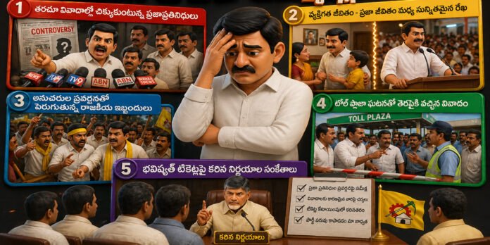 ఈ నేపథ్యంలో కళ్యాణదుర్గం ఎమ్మెల్యే అమిలినేని సురేంద్రబాబు పేరు ఇటీవల చర్చకు వచ్చింది. మొదటిసారి ఎమ్మెల్యేగా ఎన్నికైన ఆయనకు నియోజకవర్గంలో మంచి పేరు ఉన్నప్పటికీ, టోల్ గేట్ వద్ద జరిగిన సంఘటన రాజకీయంగా పెద్ద చర్చకు దారితీసింది. ఆయన అనుచరులు టోల్ ప్లాజా సిబ్బందిపై దాడి చేసిన ఘటన తీవ్ర విమర్శలకు కారణమైంది. ఈ ఘటనపై సీఎం చంద్రబాబు స్పందించి, కేసులు నమోదు చేయాలని అధికారులను ఆదేశించడం పరిస్థితి తీవ్రతను సూచిస్తోంది. తప్పు ఎవరిదన్నది పక్కన పెడితే, ఇలాంటి సంఘటనలు పార్టీకి ఇమేజ్ డ్యామేజ్ కలిగించే అంశాలుగా మారుతున్నాయి. ఇప్పటికే పలుమార్లు ఎమ్మెల్యేలకు హెచ్చరికలు జారీ చేసిన సీఎం, పబ్లిక్ లైఫ్లో మరింత జాగ్రత్తగా ఉండాలని సూచిస్తున్నారు. చిన్న ఇష్యూ అనుకుని వదిలేస్తే అది పెద్ద సమస్యగా మారుతుందని స్పష్టం చేస్తున్నారు. అయినప్పటికీ కొందరు ఎమ్మెల్యేలు అనవసర వివాదాల్లోకి వెళ్లడం ఆగడం లేదు. ఇలా కొనసాగితే భవిష్యత్తులో టికెట్ల కేటాయింపులో కఠిన నిర్ణయాలు తీసుకునే అవకాశముందని పార్టీ వర్గాల్లో చర్చ జరుగుతోంది. ప్రజల విశ్వాసం కోల్పోకుండా ఉండాలంటే ప్రజాప్రతినిధులు మరింత బాధ్యతతో వ్యవహరించాల్సిన అవసరం ఉందని రాజకీయ విశ్లేషకులు అభిప్రాయపడుతున్నారు.