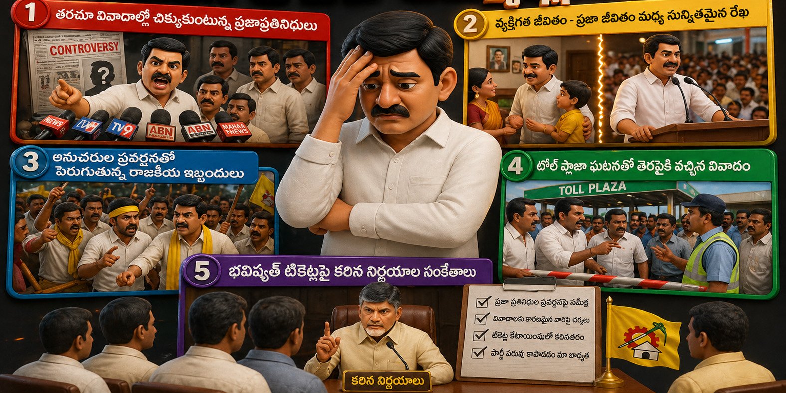 రాష్ట్ర రాజకీయాల్లో మరోసారి ప్రజాప్రతినిధుల ప్రవర్తనపై చర్చ మొదలైంది. ఒక ఇష్యూ ముగిసేలోపే మరో వివాదం తెరపైకి రావడం ఇప్పుడు సర్వసాధారణంగా మారింది. ముఖ్యంగా అధికార పార్టీకి చెందిన కొందరు ఎమ్మెల్యేలు తరచూ వివాదాల్లో చిక్కుకోవడం రాజకీయంగా ఇబ్బందికర పరిస్థితులను సృష్టిస్తోంది. ప్రజా జీవితంలో ఉన్న నాయకుల ప్రతి చర్య, ప్రతి మాట ఇప్పుడు ప్రజల దృష్టిలోనే కాకుండా మీడియా, సోషల్ మీడియా కంట్రోల్లోనూ ఉంది. చిన్న పొరపాటు జరిగినా అది పెద్ద చర్చకు దారితీస్తోంది. గతంలో కూడా ఇలాంటి ఘటనలు నాయకుల రాజకీయ భవిష్యత్తును ప్రభావితం చేసిన ఉదాహరణలు ఉన్నాయి. ఇటీవలి కాలంలో చోటుచేసుకున్న సంఘటనలు చూస్తే, నాయకుల వ్యక్తిగత జీవితం మరియు ప్రజా జీవితం మధ్య గల రేఖ ఎంత సున్నితమో స్పష్టమవుతోంది. వ్యక్తిగతంగా చేసిన చిన్న తప్పు కూడా పబ్లిక్ ఇమేజ్పై తీవ్ర ప్రభావం చూపుతోంది. అందుకే సీనియర్ నాయకులు ఎప్పుడూ సింపుల్ లివింగ్, లో ప్రొఫైల్, హై థింకింగ్ అనే సిద్ధాంతాన్ని పాటిస్తూ వస్తున్నారు. ఇక ప్రజాప్రతినిధుల విషయానికి వస్తే, వారి ప్రవర్తన మాత్రమే కాదు, వారి కుటుంబ సభ్యులు, అనుచరులు, సిబ్బంది చేసే పనులు కూడా అదే స్థాయిలో ప్రభావం చూపుతున్నాయి. చివరకు ఒక ఫోటోలో కనిపించిన వ్యక్తి చేసిన తప్పు కూడా ఆ నాయకుడి మెడకే చుట్టుకునే పరిస్థితులు ఏర్పడుతున్నాయి.