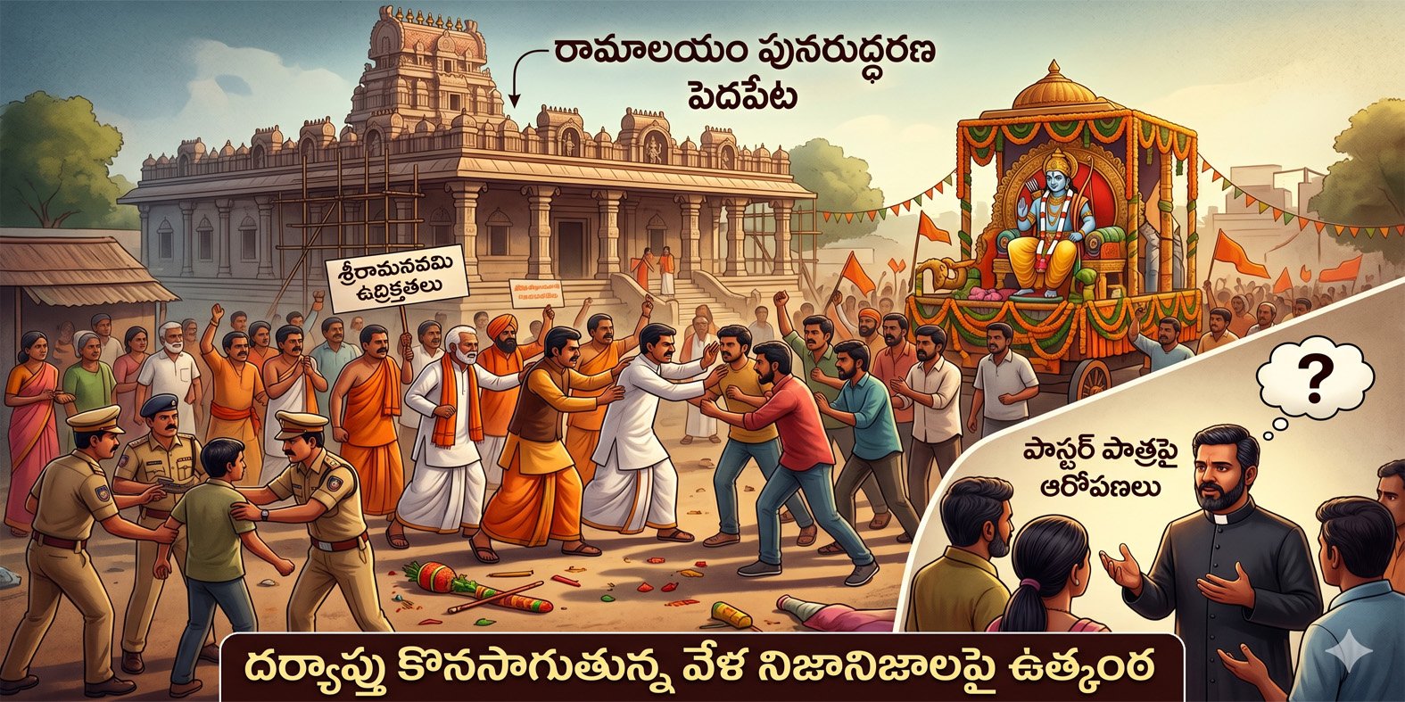 పశ్చిమగోదావరి జిల్లా ఆకివీడులోని పెదపేటలో శ్రీరామనవమి సందర్భంగా చోటుచేసుకున్న ఉద్రిక్త ఘటనలు ఇంకా చర్చనీయాంశంగానే కొనసాగుతున్నాయి. రామాలయం పునరుద్ధరణ అంశం చుట్టూ మొదలైన వివాదం, ఆపై జరిగిన సంఘటనలు, తాజాగా వెలుగులోకి వస్తున్న ఆరోపణలు ఈ కేసుకు కొత్త మలుపులు తీసుకొస్తున్నాయి. మార్చి నెలలో ప్రారంభమైన ఈ వివాదం, స్థానికంగా మతపరమైన ఉద్రిక్తతలకు దారితీసింది. రామాలయం పునరుద్ధరణకు సంబంధించిన ప్రకటనతో కొంతమంది స్థానికుల నుంచి వ్యతిరేకత వ్యక్తమైంది. ఆ తరువాత వివిధ సంఘటనలు వరుసగా చోటుచేసుకోవడంతో పరిస్థితి మరింత క్లిష్టంగా మారింది. శ్రీరామనవమి రోజున పూజల సందర్భంలో ఉద్రిక్తతలు తలెత్తి, కొన్ని వర్గాల మధ్య ఘర్షణలు చోటుచేసుకున్నాయి. ఈ ఘటనలో పలువురిపై కేసులు నమోదు చేసి అరెస్టులు చేసినట్లు సమాచారం. ఈ నేపథ్యంలో కేసులో నిందితుడిగా ఉన్న భీమవరానికి చెందిన మీసాల జయరాజు జైలుకు వెళ్లి, అనంతరం బెయిల్పై విడుదలయ్యారు. తాజాగా ఆయన మీడియాతో మాట్లాడుతూ, ఈ ఘటనకు సంబంధించి కొన్ని కీలక ఆరోపణలు చేశారు. పెదపేటలో జరిగిన పరిణామాల వెనుక పాస్టర్ ఇస్మాయిల్ పాత్ర ఉందని ఆరోపించారు. శాంతియుతంగా నిర్వహించాల్సిన కార్యక్రమం అనూహ్యంగా ఉద్రిక్తతలకు దారితీసిందని పేర్కొన్నారు. జయరాజు చెప్పిన ప్రకారం, మొదట శాంతియుత ర్యాలీ నిర్వహించాలనే ఉద్దేశంతో అక్కడికి వెళ్లినట్లు తెలిపారు.