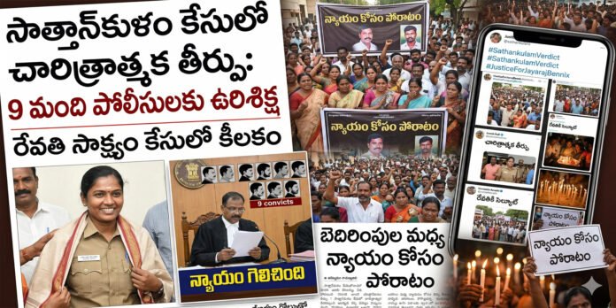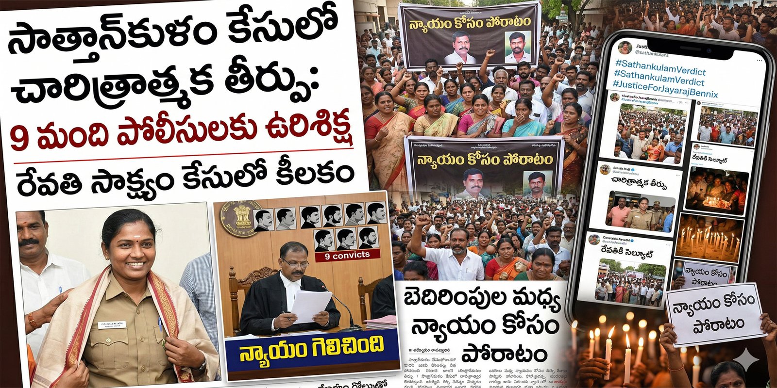 సాత్తాన్‌కుళం లాకప్ డెత్ కేసులో మధురై కోర్టు చారిత్రాత్మక తీర్పు వెలువరించింది. తండ్రి–కొడుకుల మృతికి బాధ్యులైన 9 మంది పోలీసులకు ఉరిశిక్ష విధించింది. ఈ కేసులో హెడ్ కానిస్టేబుల్ రేవతి ధైర్యంగా సాక్ష్యం ఇవ్వడం కీలక మలుపు అయింది. సహచరుల బెదిరింపులను లెక్కచేయకుండా న్యాయం కోసం నిలిచిన ఆమెపై ప్రశంసల వర్షం కురుస్తోంది. కోర్టు ఇచ్చిన రక్షణతో ఆమె చూపిన తెగువ దేశవ్యాప్తంగా చర్చనీయాంశమైంది.